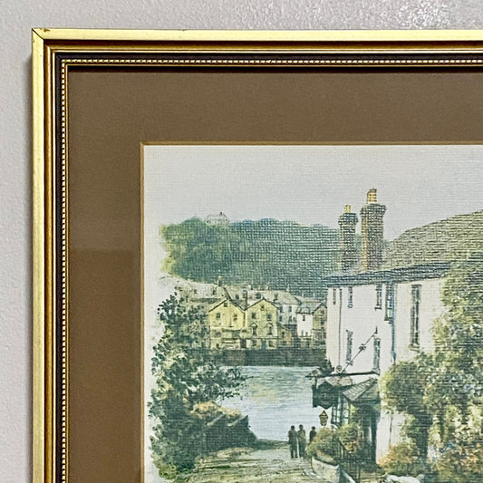 Vintage Boat Harbour Scene Bodinnick Ferry Cornwall Watercolour Art Print Framed