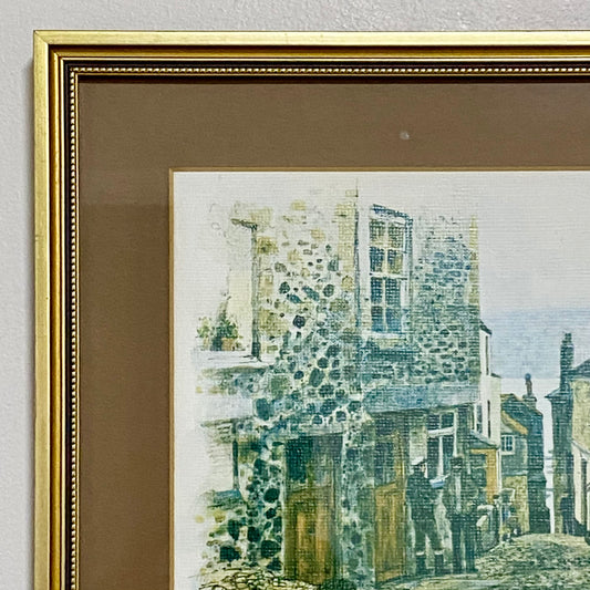 Vintage Narrow Street Scene St Ives Cornwall Watercolour Art Print Signed Framed