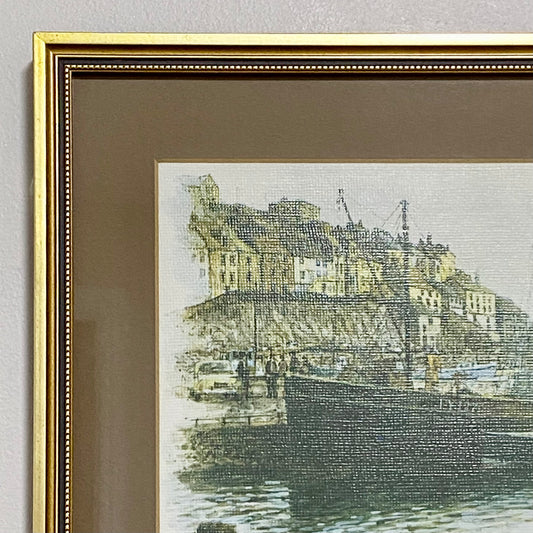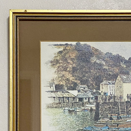 Vintage Boat Harbour Scene Mevagissey Cornwall Watercolour Art Print Framed