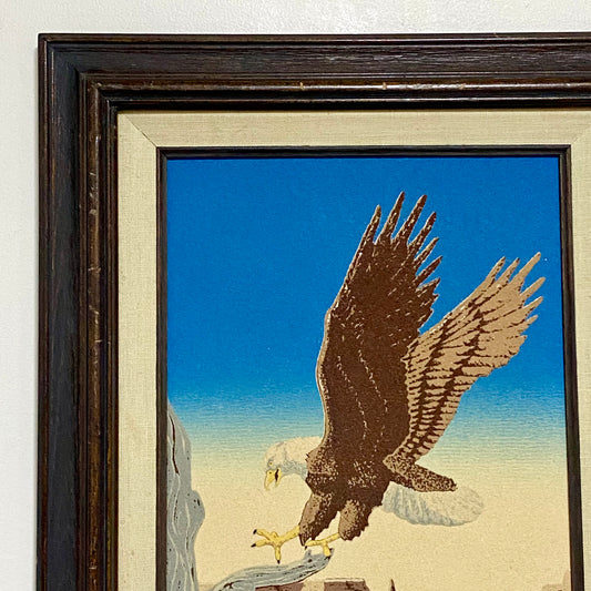 Vintage Bald Eagle Flying Bird Sand Art Picture Signed By Artist Framed Rare