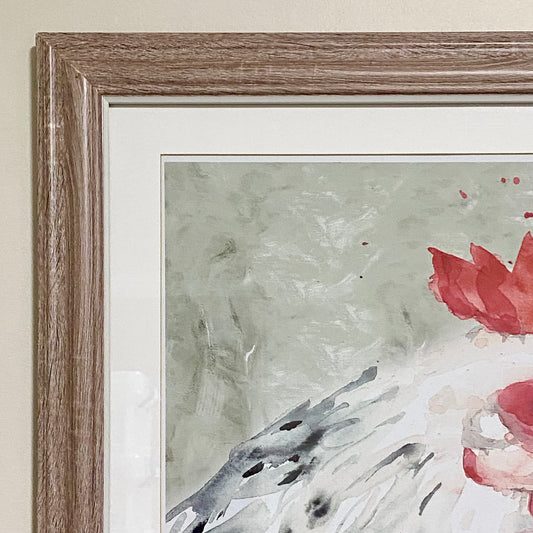 Two Roosters Chick Flick Chickens Watercolour Art Print Signed Olivia Athen