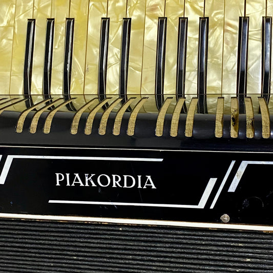 Antique Vintage Piakordia Tonika II Accordion Black With Yellow Marble Keys Rare