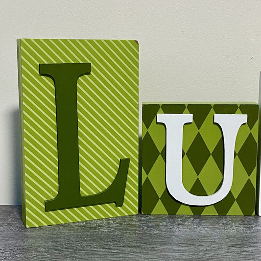 St Patrick’s Day “Lucky” Sign Plaque Display Green Wood Wooden Block Blocks Rare