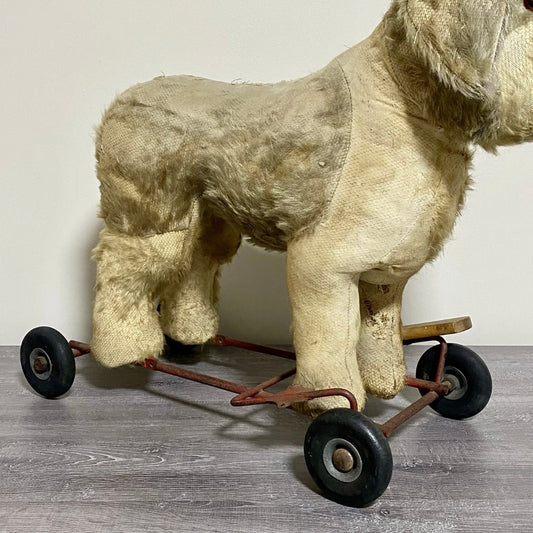 Vintage Pedigree Soft Toys 1940s/50's Mohair Dog Push Along Walker Toy Prop Rare
