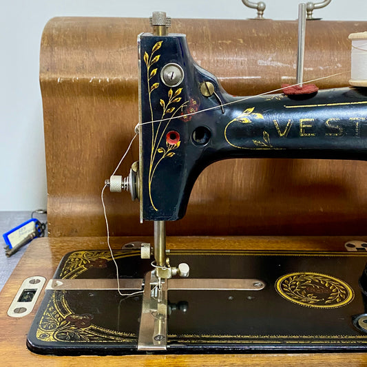 Antique Vesta 1930s Sewing Machine Hand Crank With Original Case & Accessories