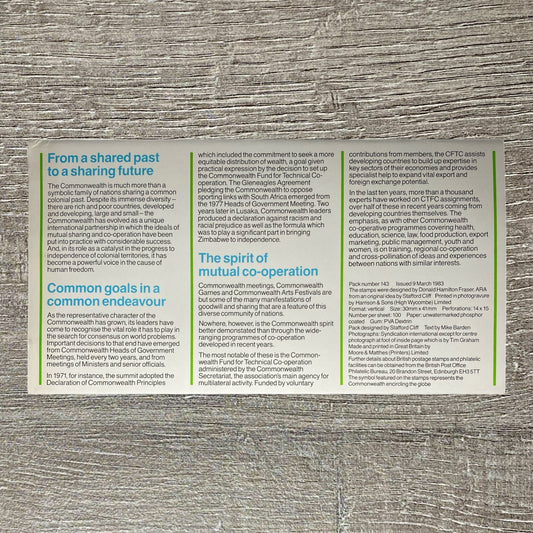 GB QEII 1983 Royal Mail Commonwealth Day Mint Stamps Presentation Pack No. 143