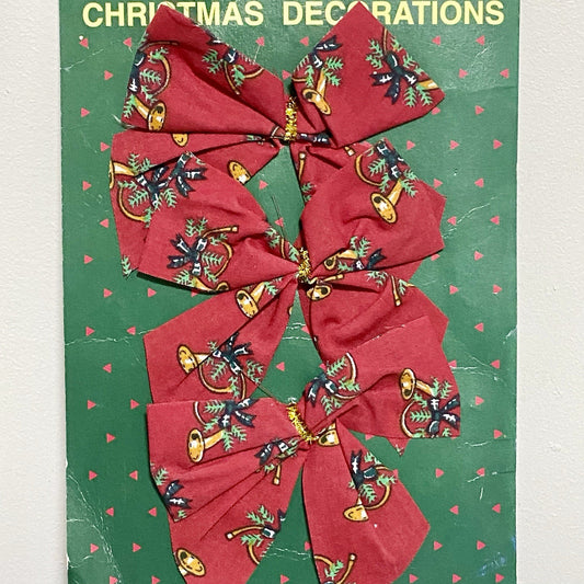 Vintage Traditional Christmas Tree Bows Pack Of 3 Xmas Decoration Bell Pattern